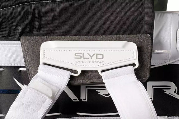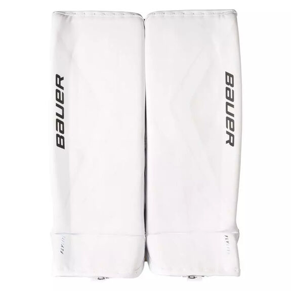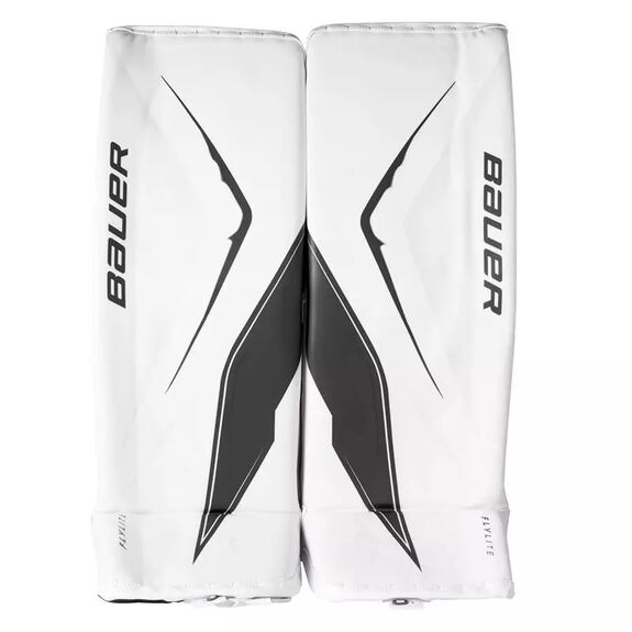 Bauer utilise son nouveau système de sangles, les sangles SLYD, sur les jambières Flylite. Le système de sangles se compose d'une série de sangles et de fixations réglables permettant d'obtenir le niveau de soutien, de mobilité et de confort souhaité. La botte Flylite inclut également une bande de mollet Aerolite en matériau résistant à l'abrasion pour une meilleure connexion et une protection accrue de la jambe.