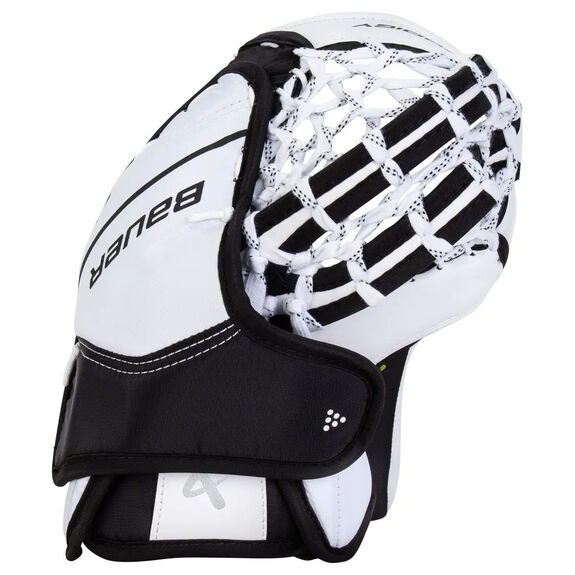 Conçue spécifiquement pour répondre aux besoins des jeunes gardiens de but, la mitaine de gardien de but Prodigy enfant de Bauer, repensée, offre une protection confortable avec une fermeture facile.