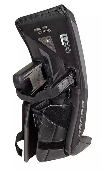 Bauer continue d'utiliser le système de sangles TuneFit éprouvé sur la gamme de jambières SV-Pro. Ce système se compose de sangles et de fixations réglables permettant d'obtenir le niveau de soutien, de mobilité et de confort souhaité.