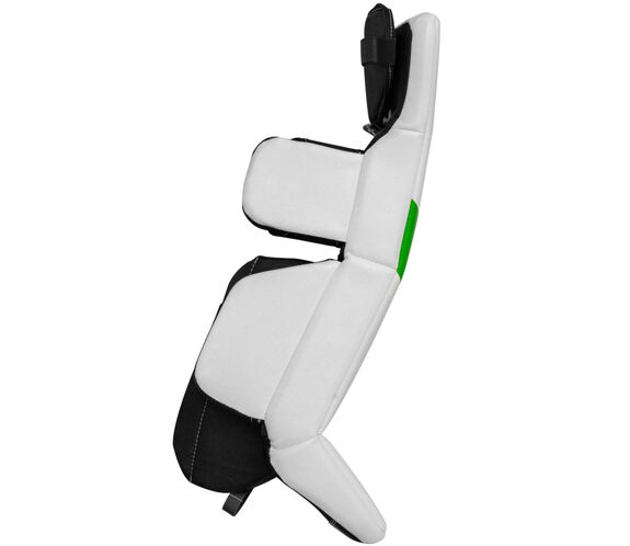 L'avant des jambières a des genoux roulés et un noyau plus doux qui absorbe l'énergie du palet et garde les rebonds beaucoup plus près du gardien de but pour une dissimulation rapide. Cette conception de botte a plus de flexibilité pour répondre à la mobilité de ce type de gardien de but, tout en offrant une bonne couverture papillon.