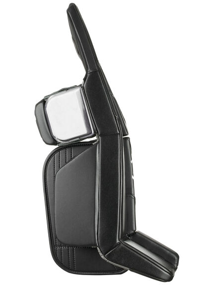 L'avant des jambières a des genoux roulés et un noyau plus doux qui absorbe l'énergie du palet et garde les rebonds beaucoup plus près du gardien de but pour une dissimulation rapide. Cette conception de botte a plus de flexibilité pour répondre à la mobilité de ce type de gardien de but, tout en offrant une bonne couverture papillon.