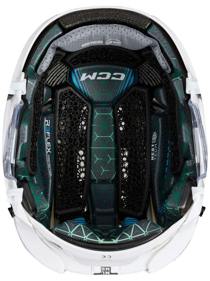 L'intérieur du casque est équipé des technologies R3FLEX et Nest Tech, conçues pour les joueuses de haut niveau. Cette doublure 3-en-1 offrant une couverture intégrale et un confort optimal réagit dynamiquement pour absorber tous types d'impacts. Les mousses assurent une absorption des chocs à haute énergie et un amorti optimal pour les impacts à basse énergie, tout en étant conçues pour s'adapter à la forme de la tête.