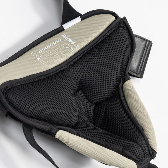 Warrior a opté pour une doublure douce et rembourrée afin de favoriser la respirabilité et le confort. La protection abdominale ergonomique permet une grande liberté de mouvement sur la partie haute de la coquille, permettant ainsi au gardien de s'accroupir autant que nécessaire sans aucune gêne.