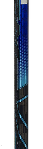 Le manche de la crosse de hockey CCM Vizion 2 arbore des graphismes revisités qui mettent en valeur sa nouvelle version. Des inscriptions turquoise et bleu marine ornent le manche, lui conférant un style épuré et moderne. Le logo « CCM », également turquoise avec des caractères noirs, souligne l'esthétique du bâton, à la hauteur de ses performances.