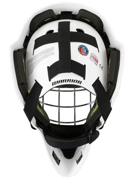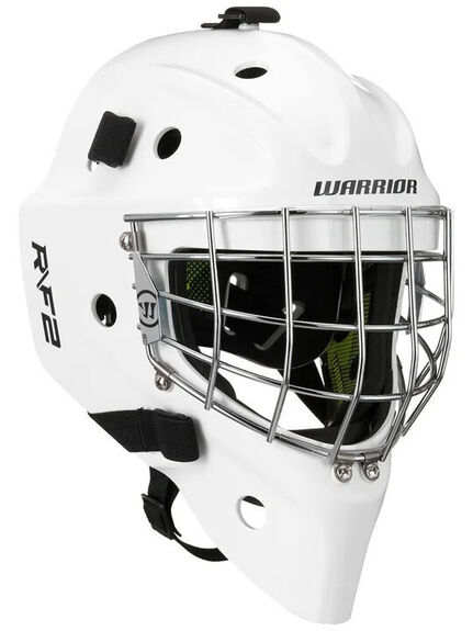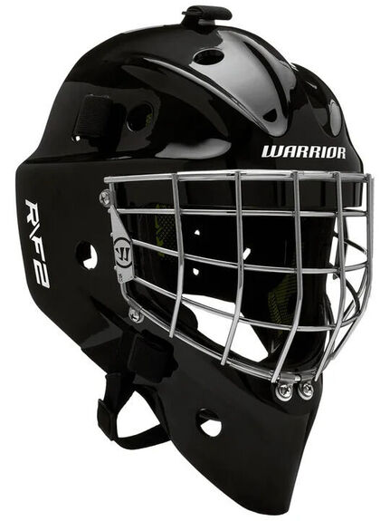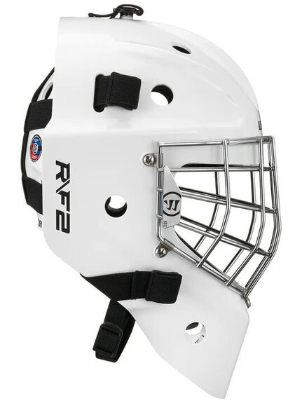 Warrior a conçu la mentonnière de façon optimale, permettant une liberté de mouvement totale de la tête sans gêner la protection thoracique. Les gardiens peuvent ainsi suivre la rondelle du regard et observer le jeu derrière le filet. Ce modèle est livré avec une grille « œil de chat » certifiée pour une vision optimale, un bandeau anti-transpiration Polygiene qui réduit les odeurs et la transpiration, ainsi qu'une housse rembourrée pour protéger le RF2 E entre les matchs. Un protège-gorge en Lexan est également inclus pour les gardiens souhaitant une protection supplémentaire du cou, ainsi qu'un bandeau anti-transpiration de rechange.