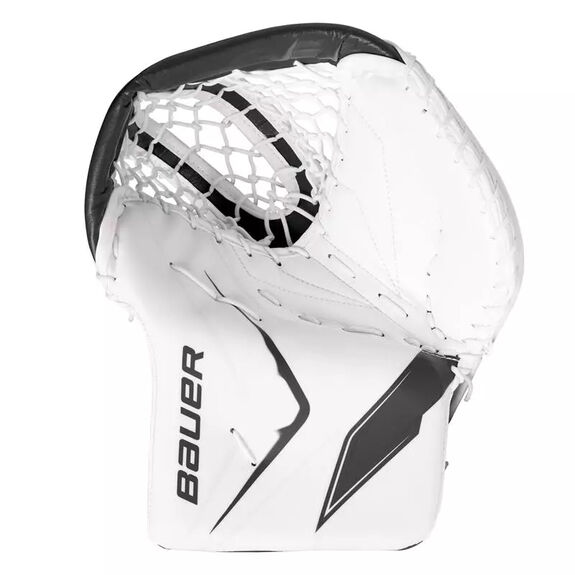 La mitaine possède un angle de fermeture de 60 degrés plus profond, permettant une fermeture complète de la main (des doigts jusqu'à la base du pouce) par rapport aux modèles précédents de la gamme Bauer Vapor. Elle offre un bon équilibre entre protection et mobilité. L'angle de la paume vers le bas crée une large surface de réception, facilitant les arrêts sur les tirs en hauteur et permettant des mouvements rapides et fluides dans les espaces restreints. Cet angle est conçu pour épouser la courbure naturelle de la main, réduisant ainsi la tension et la fatigue au niveau du poignet et de la main.