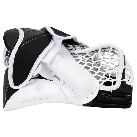 La Vapor Flylite est dotée d'une poche en double T offrant une large surface de réception sécurisée. Sa construction en deux parties permet au gardien de coincer la rondelle entre les deux sections de la poche, assurant une prise stable. La poche en double T facilite le lâcher du palet et sa forme en « entonnoir » naturelle guide le palet vers la main du gardien pour des arrêts plus nets et plus rapides.