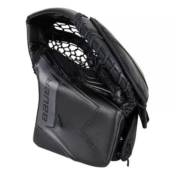 La paume est protégée et recouverte de polycarbonate. Cette conception assure un maintien optimal des mains, tandis que le rembourrage supplémentaire protège les gardiens des impacts susceptibles de les affecter dans des zones sensibles. Bauer a également intégré une doublure de paume antidérapante Nash Grip pour un confort et une protection accrus lors des arrêts.
