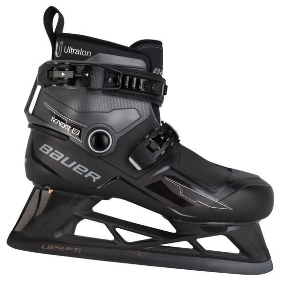 Inspirés des chaussures de ski haut de gamme, les patins de gardien KONEKT ambitionnent de révolutionner le patinage de gardien. Ils sont dotés d'une coque thermoformable en Grilamid, d'un intérieur PushPlate, d'un collier Hingeflex et d'un chausson en mousse Ultralon, le tout visant à offrir le même niveau de connexion que les chaussures de ski d'élite.