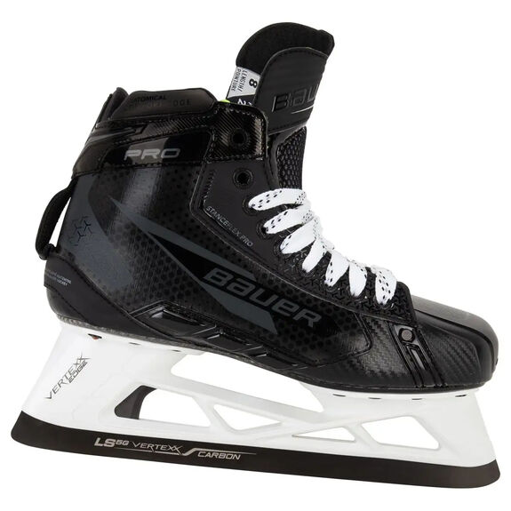 Les patins Pro conservent la combinaison support Vertexx et lame LS5G+, présente sur tous leurs patins de gardien haut de gamme ces dernières années. La lame LS5G+ des patins Pro bénéficie d'un nouveau profil d'agilité qui, comme son nom l'indique, favorise l'appui du gardien sur l'avant-pied.